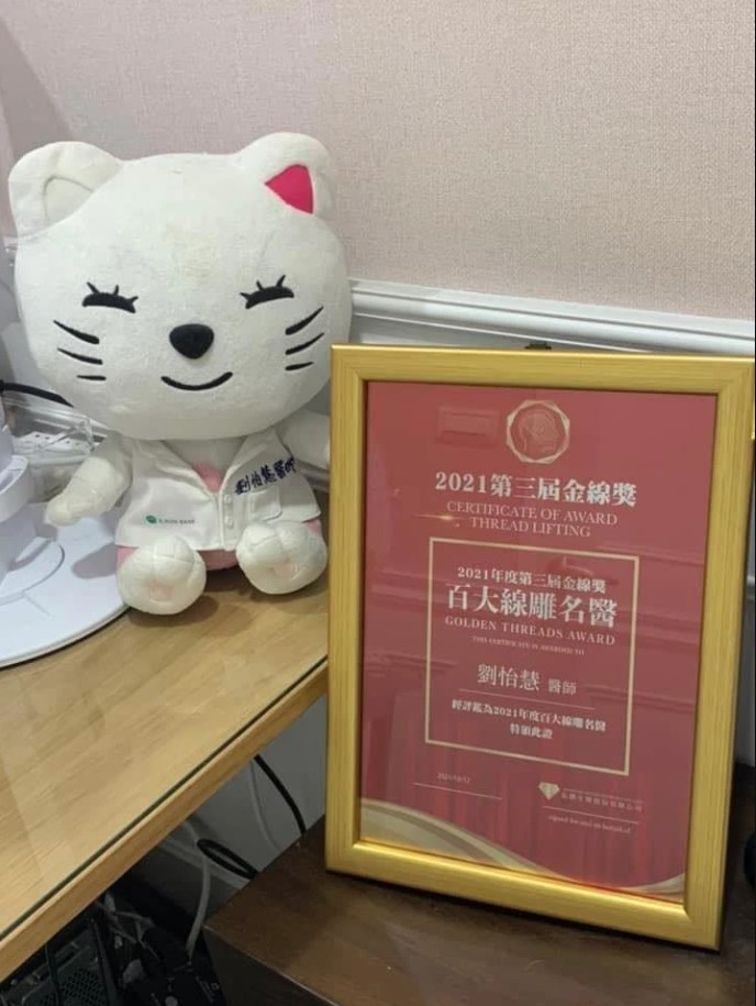 劉怡慧院長,榮獲2022年金線獎。因為身為女性醫師的貼心細心,對完美的執著,再加上埋線高超輕巧的技法,深受病患和醫學會的肯定。